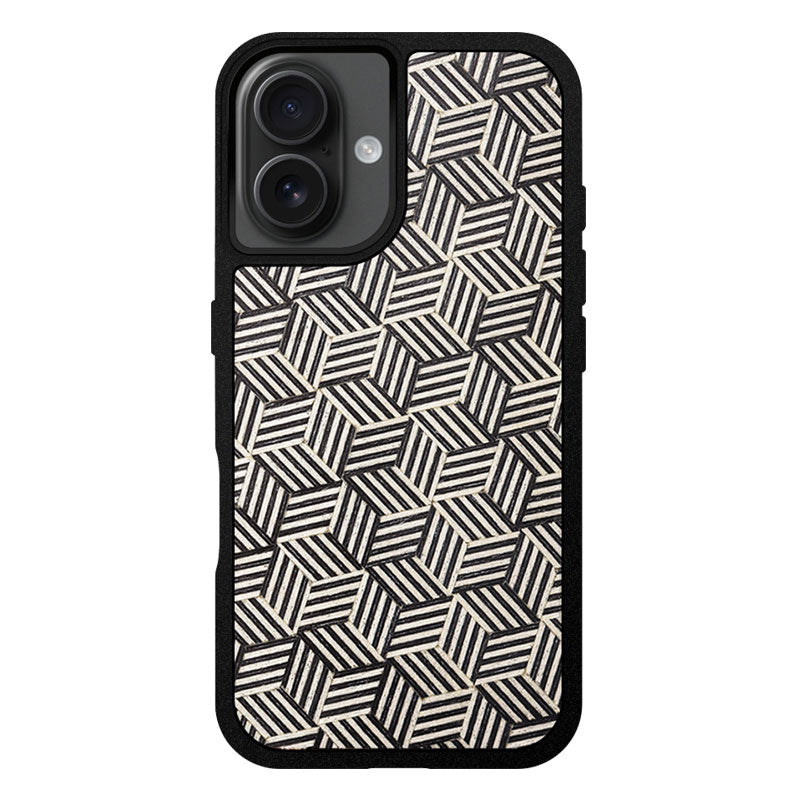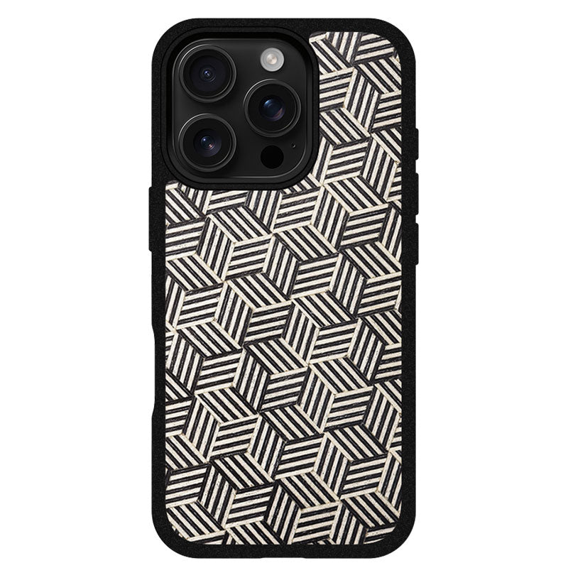 iPhone case handcrafted with Ebony and Sycamore woods inlay.